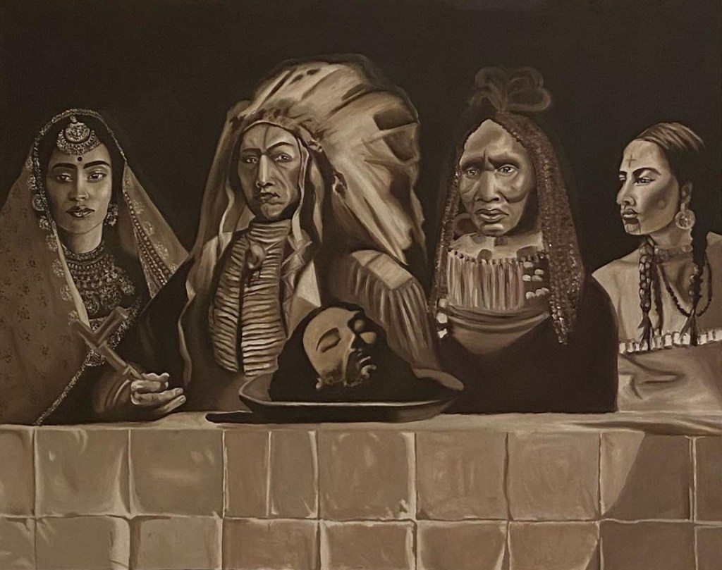 “The Stolen Enlightenment” (painting series) November 2021. oil paint on canvas 18″x24″“The Last Supper” October 2021, oil paint on canvas 32″x40″.“The Stolen Enlightenment” (painting series) November 2021. oil paint on canvas 18″x24″“The Stolen Enlightenment” (painting series) November 2021, oil paint on canvas 32″x40″, 18″x24″, 18″x24″. Installation view.“The Stolen Enlightenment” Close Up.“The Stolen Enlightenment” Close Up.“The Stolen Enlightenment” Close Up.“The Last Supper” Close Up.