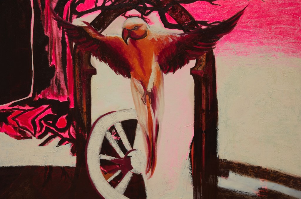 “Were we ever free?” December 2025. Acrylic, oil and oil sticks on canvas 75cm x 90cm.